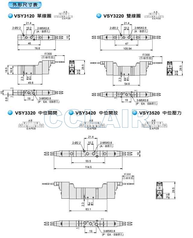 詳細信息 VSY3120,VSY3220,VSY3320,VSY3420,VSY3520電磁閥