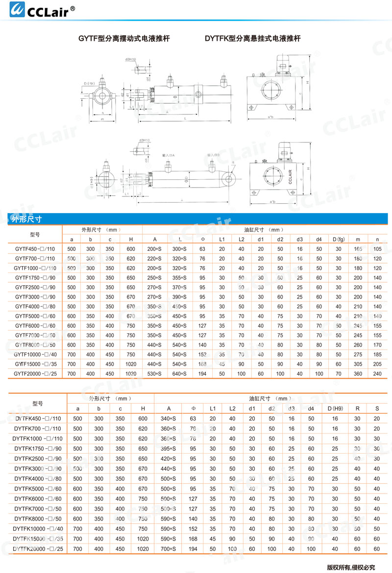 DYTPW2500-□/90,DYTPW3000-□/90,CCLair DYTPW4000-□/80,DYTPW5000-□/60,DYTPW6000-□/60,
