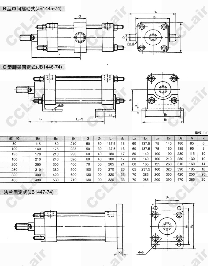 JB-80,JB-100,JB-125,JB-160,JB-200,JB-250,JB-320,JB-400,JB-200×100S,JB-80×100S,氣缸