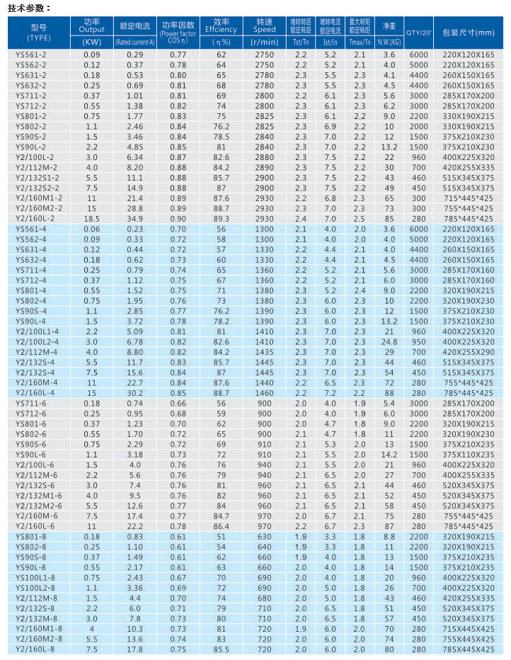 YS801-8,YS802-8,YS90S-8,YS90L-8,YS100L1-8,YS100L2-8,