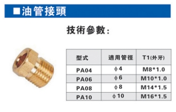 詳細信息 PA04,PA06,PA08,PA10,油管接頭
