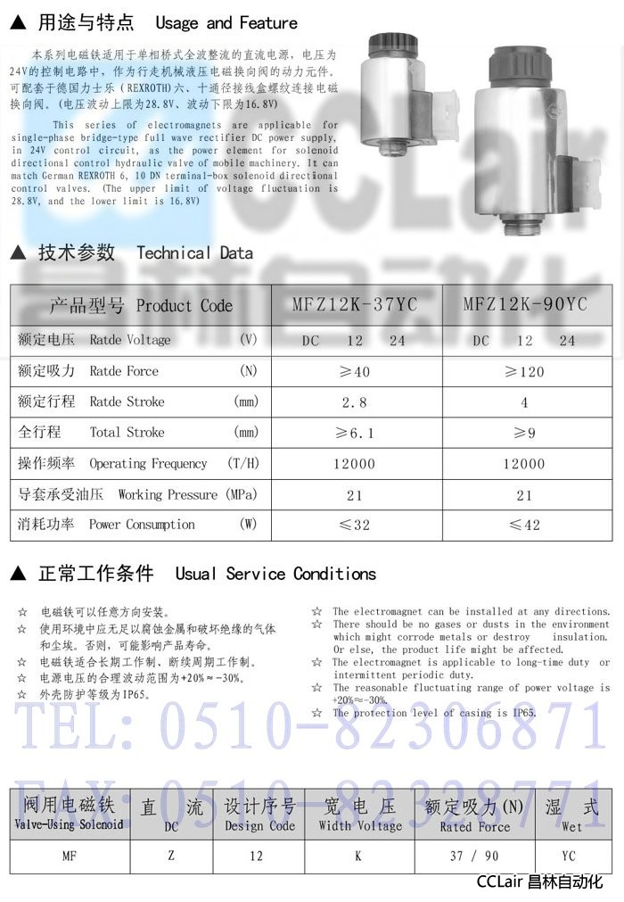 詳細信息 MFZ12K-37YC,MFZ12K-90YC,寬電壓直流濕式閥用電磁鐵