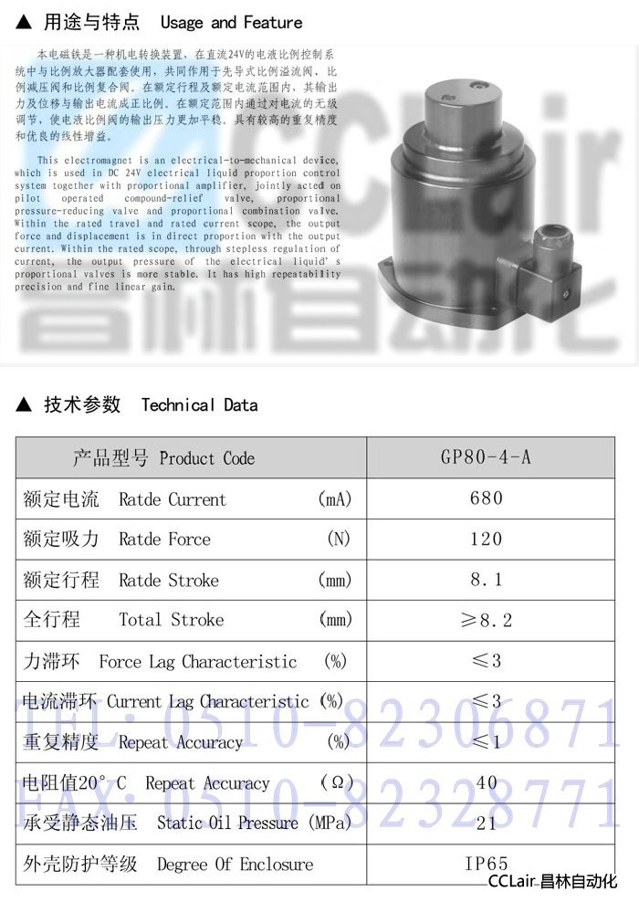 詳細信息 GP80-4-A,比例閥用電磁鐵