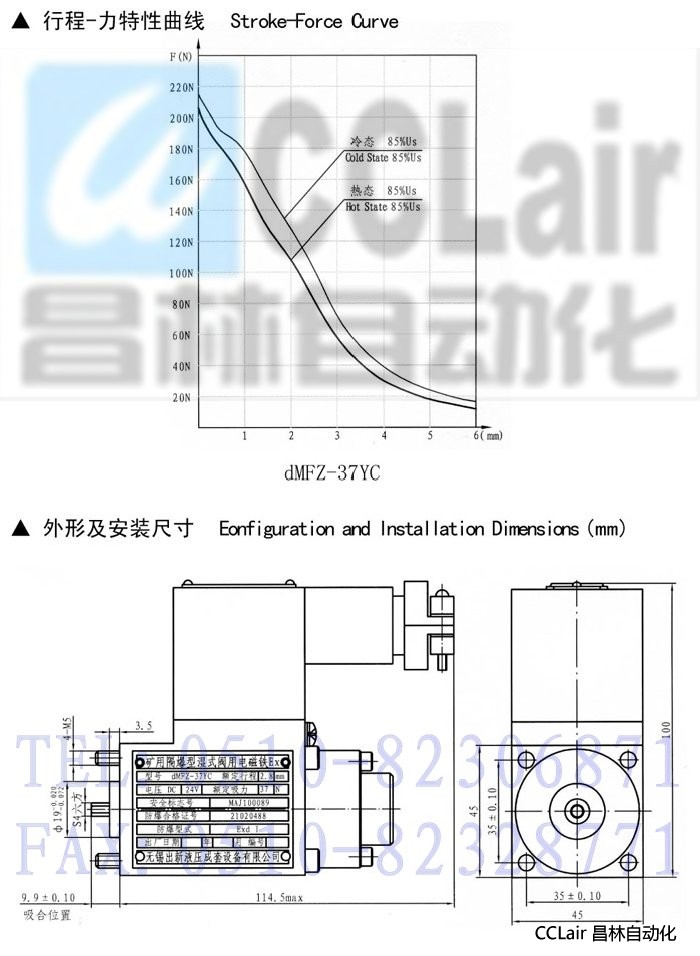 詳細信息 dMFZ-37YC,隔爆型直流濕式閥用電磁鐵