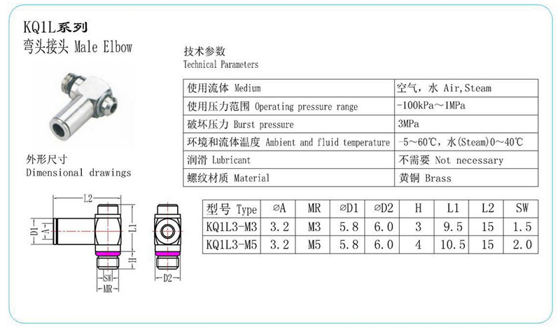 詳細信息 KQ1L3-M3,KQ1L3-M5,彎頭接頭
