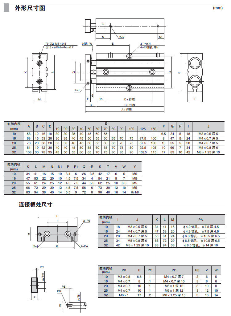 EGM10-10R,EGM16-10R,EGM20-10R,EGM25-10R,EGM32-10R,雙活塞桿氣缸