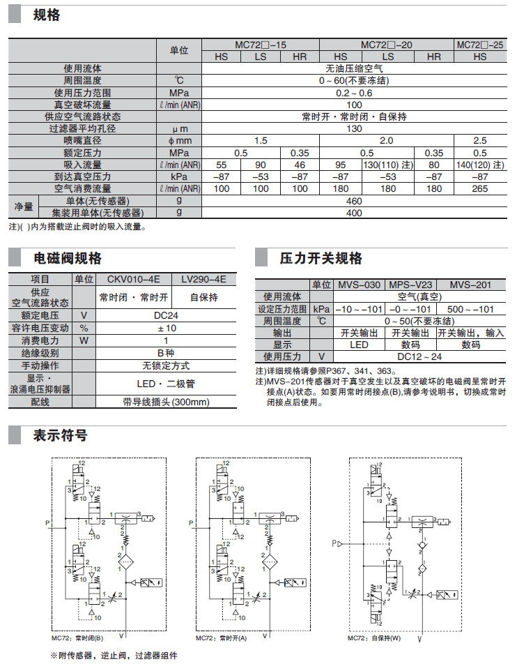 MC72-S-15,MC72-S-20,MC72-S-25,MC72-M-15,MC72-M-20,MC72-M-25,真空發(fā)生器組合