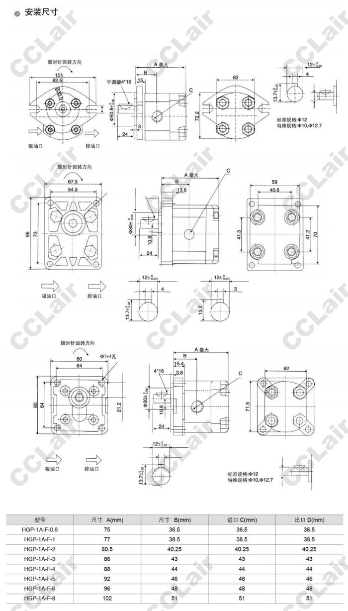HGP-1A-F-1,HGP-1A-F-2,HGP-1A-F-3,HGP-1A-F-4,HGP-1A-F-5,HGP-1A-F-6,HGP-1A-F-8,高壓齒輪泵