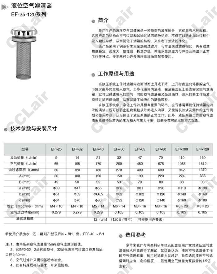 詳細信息 EF1-25,EF2-25,EF3-40,EF4-50,EF5-65,EF6-80,EF7-100,EF8-120,液位空氣濾清器,無(wú)錫昌林