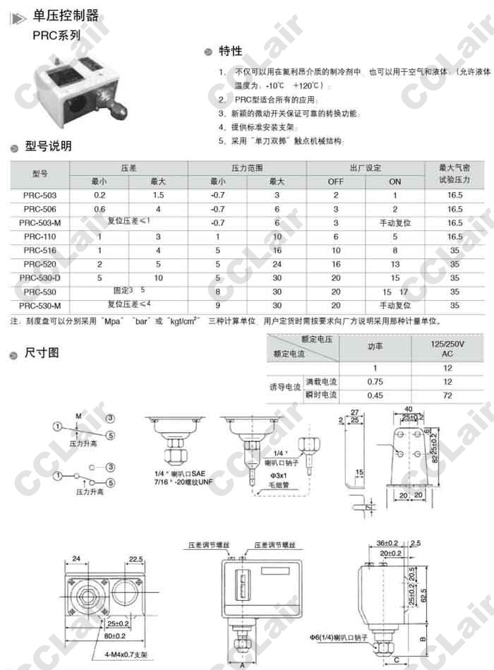 PRC-503,PRC-506,PRC-503-M,PRC-110,PRC-516,PRC-520,PRC-530-D,PRC-530,PRC-530-M,單壓控制器