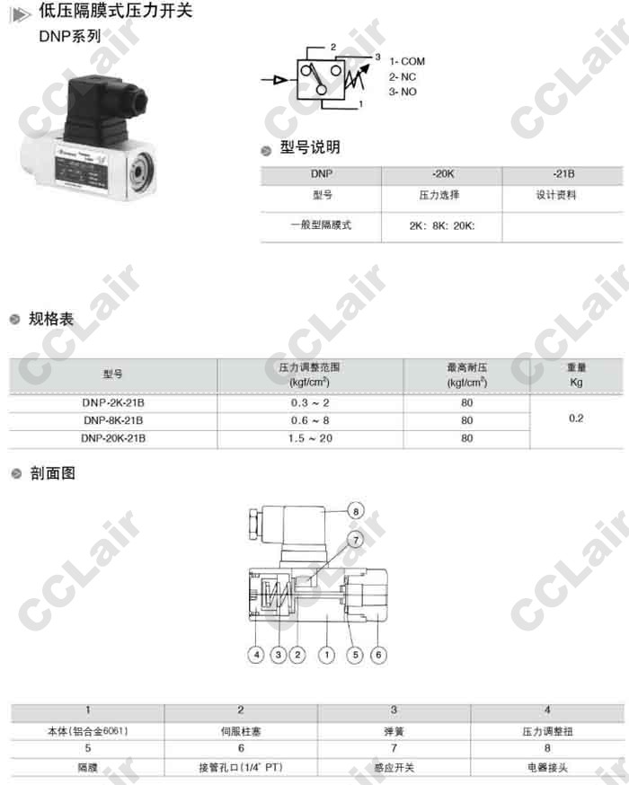 DNP-2K-21B,DNP-8K-21B,DNP-20K-21B,低壓隔膜式壓力開(kāi)關(guān)