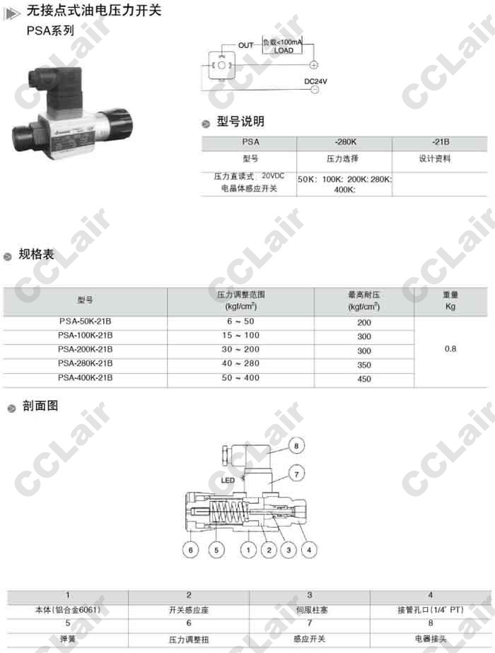 PSA-50K-21B,PSA-100K-21B,PSA-200K-21B,PSA-280K-21B,PSA-400K-21B,油電壓力開(kāi)關(guān)