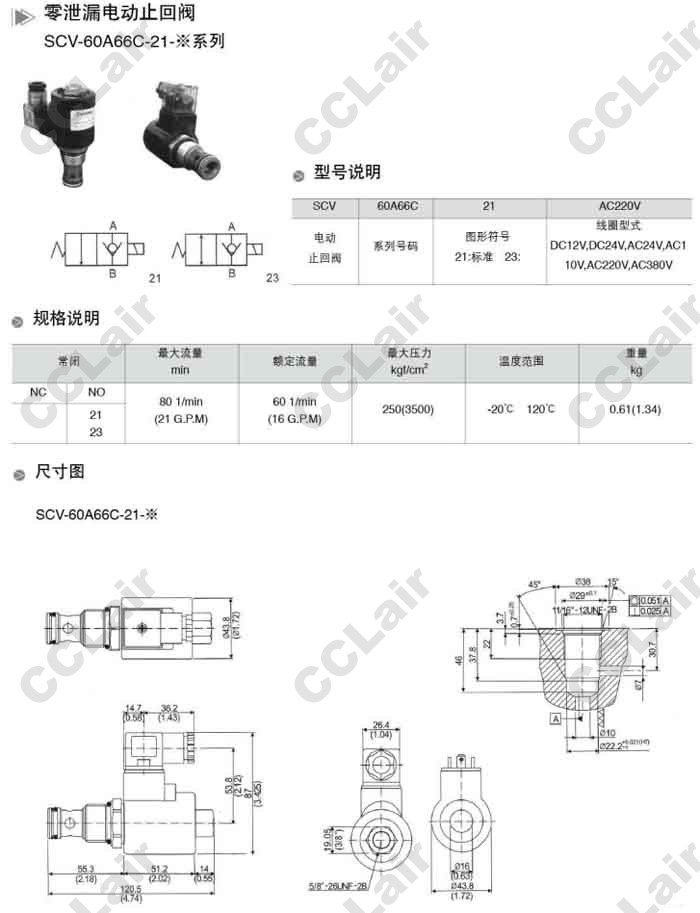 詳細信息 SCV-60A66C-21,SCV-60A66C-23,SCV-60A66C-21-DC12V,SCV-60A66C-21-DC24V,零泄漏電動(dòng)止回閥