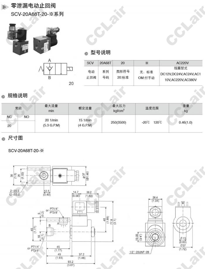 詳細信息 SCV-20A68T-20-DC12V,SCV-20A68T-20-DC24V,SCV-20A68T-20-AC24V,零泄漏電動(dòng)止回閥