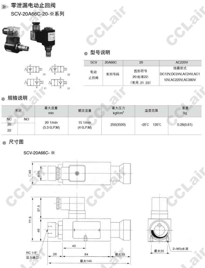 SCV-20A66C-22-DC24V,SCV-20A66C-22-AC24V,SCV-20A66C-22-AC110V,SCV-20A66C-22-AC220V,