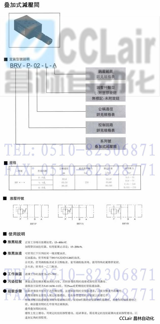 BRVA-06 ,BRVB-06,BRVP-06,疊加式減壓閥
