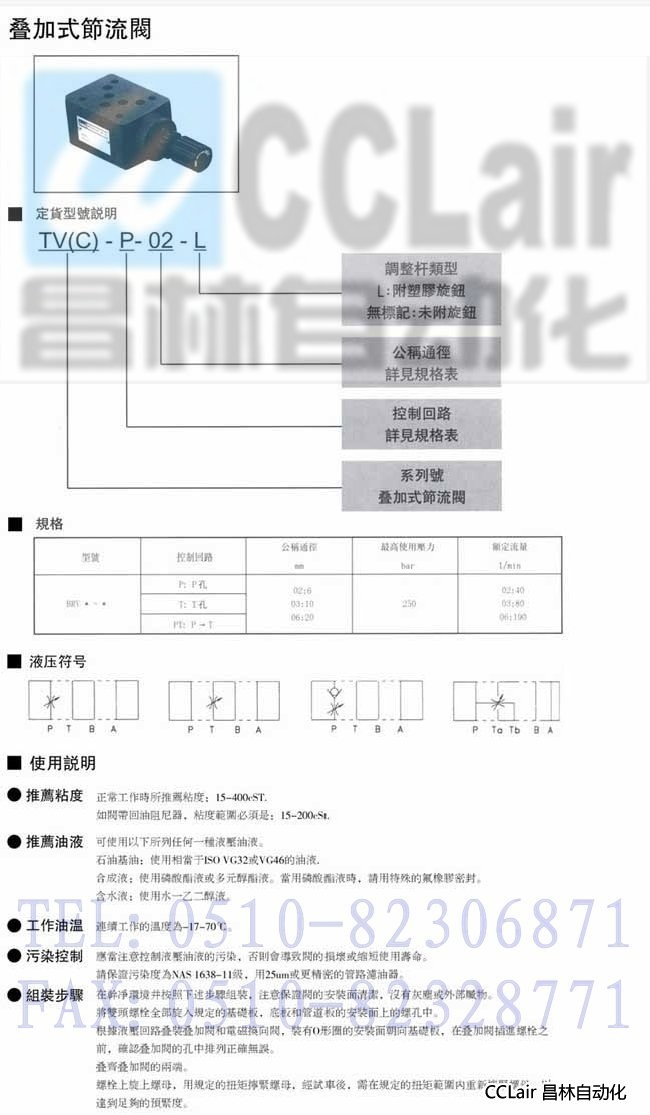 TVP-02,TVP-03,TVP-06,TVT-02,TVT-03,疊加式節流閥
