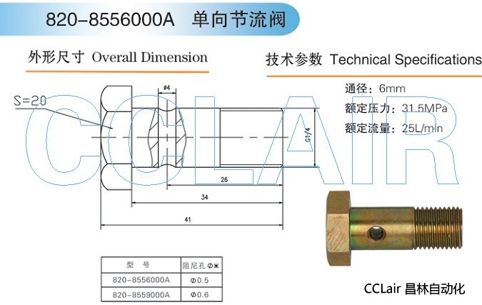 詳細信息 820-8556000A,820-8559000A,單向節流閥