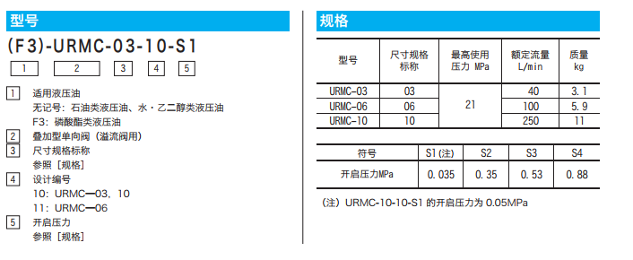 URMC-03-10-S1,URMC-03-10-S2,URMC-03-10-S3,URMC-03-10-S4,URMC疊加型單向閥(溢流閥用)
