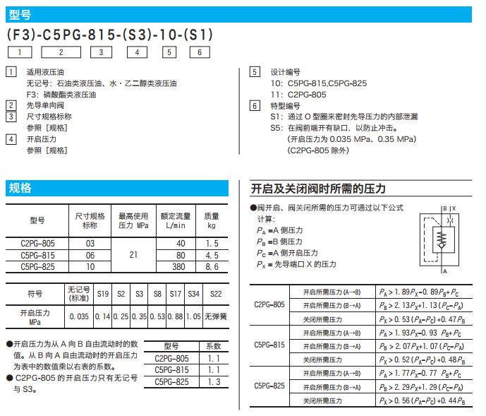 C2PG-805-11,C2PG-805-S3-11,C5PG-815-10,C5PG-815-S2-10,C2PG/C5PG先導單向閥