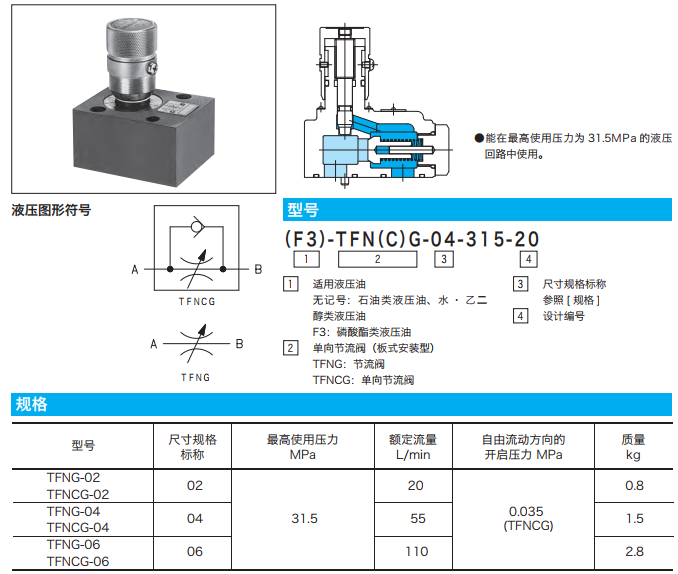 TFNG-02-315-20,TFNG-04-315-20,TFNG-06-315-20,TFNCG-02-315-20,TFNCG-04-315-20,TFNCG-06-315-20,TFN(C)G單向節流閥