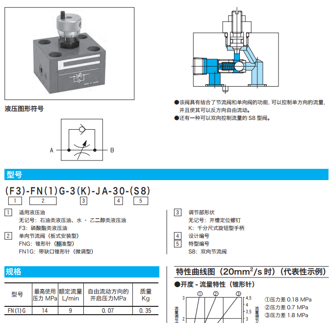 FNG-3-JA-30,FNG-3K-JA-30,FN1G-3-JA-30,FN1G-3K-JA-30,FN(1)G單向節流閥