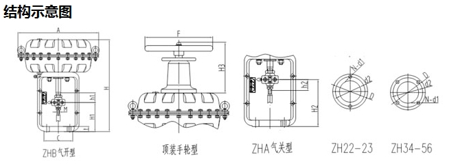 作用形式ZHA型:正作用,氣關(guān),當氣壓增加時(shí),閥桿部件向下移;
