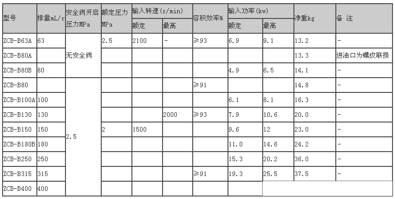 ZCB-B63A,ZCB-B80A,ZCB-B80B,ZCB-B80,ZCB-B100A,ZCB-B130,齒輪泵