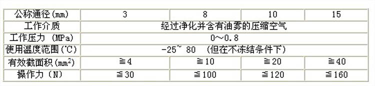 2、 無(wú)給油(也可給油)潤滑,避免油氣污染,可省去油霧器。 3、 手柄裝有橡膠防塵套,保證內部運動(dòng)件清潔。 型號說(shuō)明: ![]() 主要技術(shù)參數: ![]() 共0條 相關(guān)評論 |