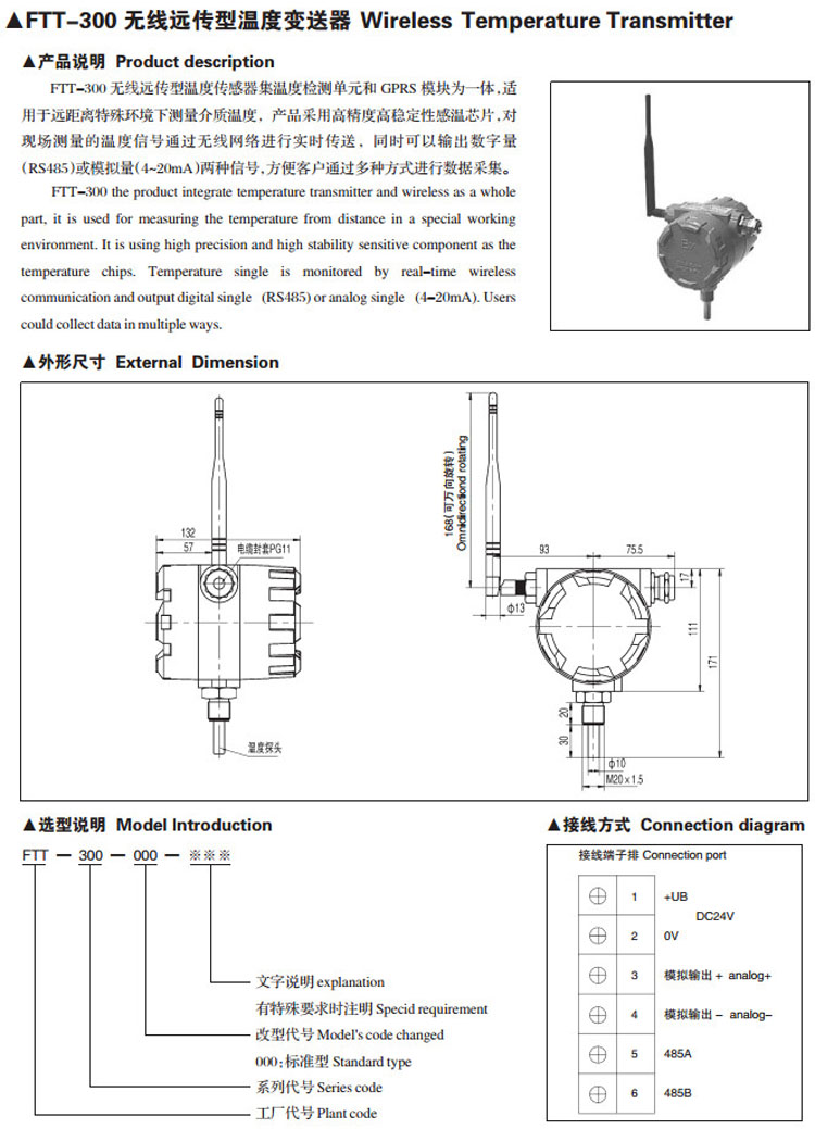 詳細信息 FTT-300,無(wú)線(xiàn)遠傳型溫度變送器