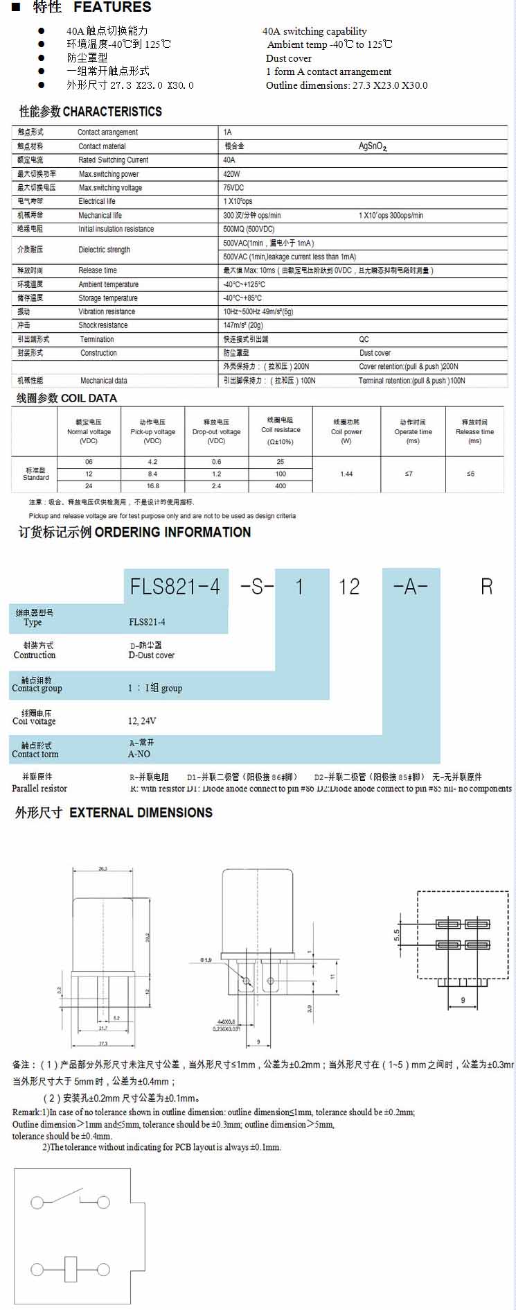 詳細信息 FLS821-4,汽車(chē)繼電器