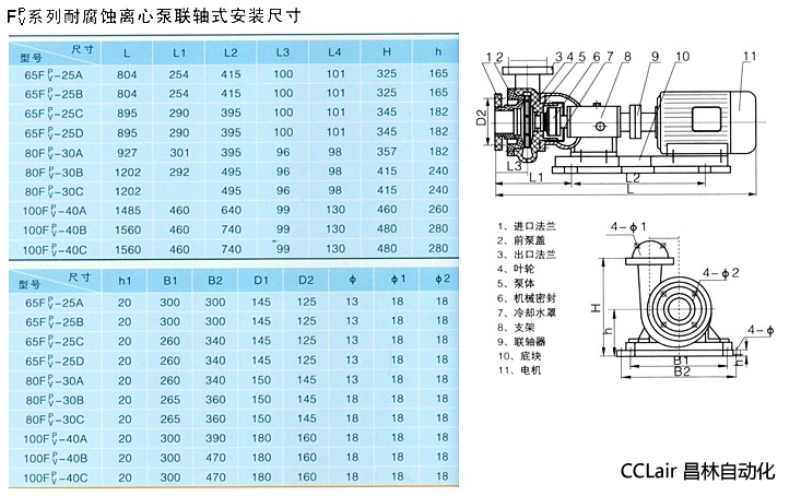 詳細信息 80FV-30C,100FV-40A,100FV-40B,100FV-40C,80FV-30B,耐腐蝕離心泵(軸聯(lián)式),