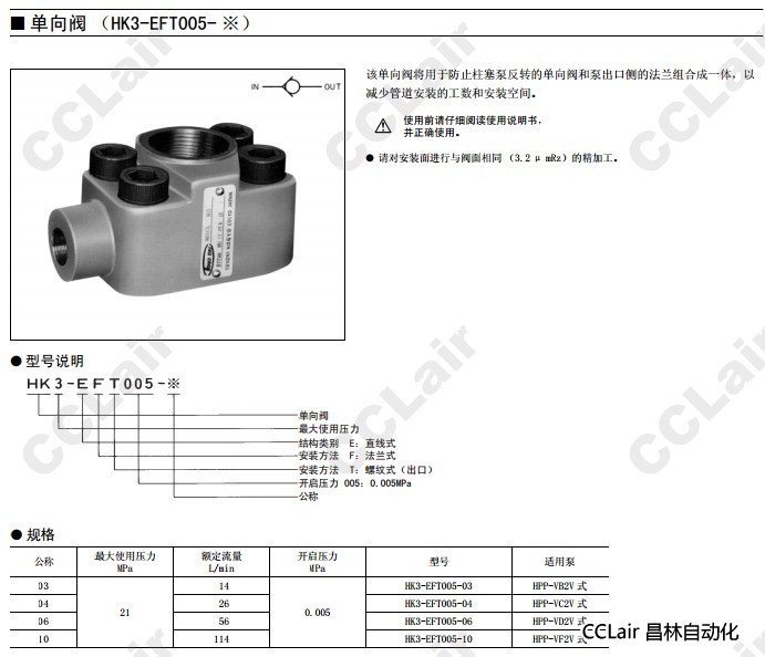 HK3-EFT005-03,HK3-EFT005-04,HK3-EFT005-06,HK3-EFT005-10,單向閥