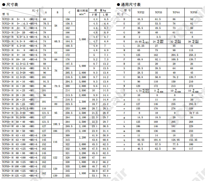 TCP44-L40-50-MR1,TCP44-L50-50-MR1,TCP55-L63-63-MR1,