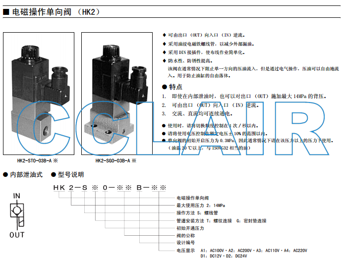 詳細信息 HK2-STO,HK2-SGO,HK2-STO-02B-A1,HK2-STO-02B-A2,HK2-STO-02B-A3,電磁操作單向閥