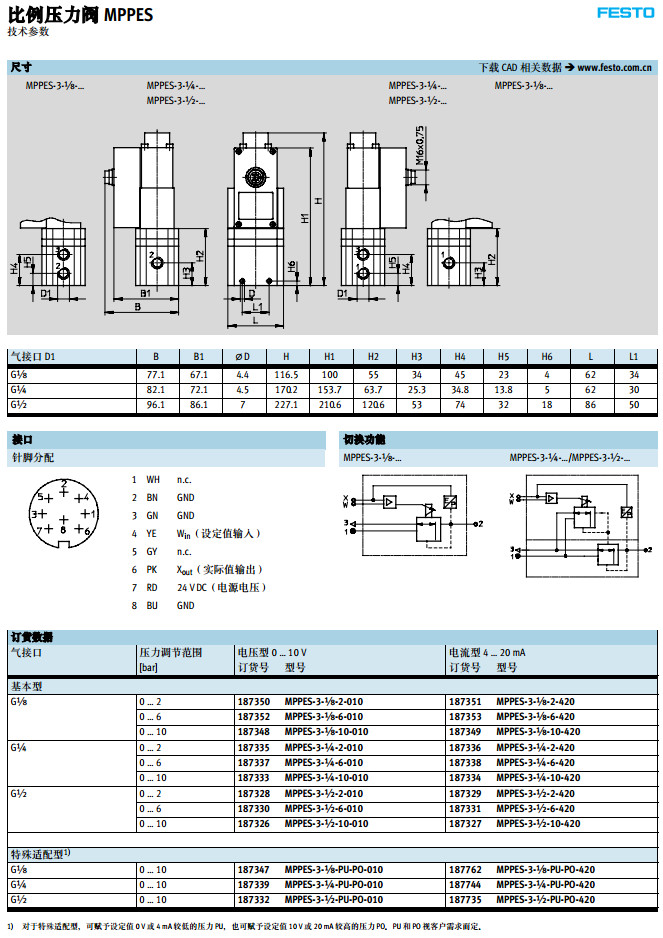 詳細信息 MPPES-3-1/8-2-010,MPPES-3-1/4-2-010,MPPES-3-1/2-2-420,festo比例壓力閥