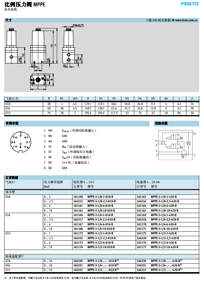 MPPE-3-1/8-1-010-B,MPPE-3-1/4-1-010-B,MPPE-3-1/2-1-010-B,festo比例壓力閥