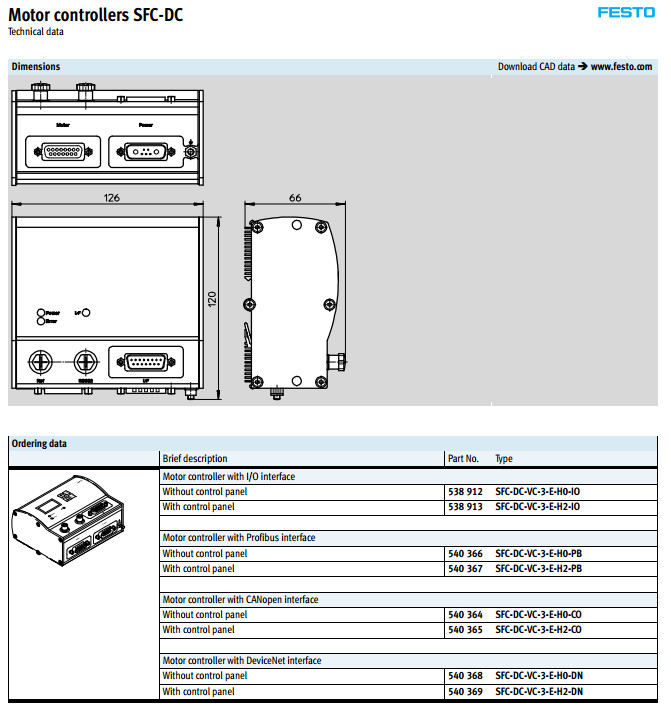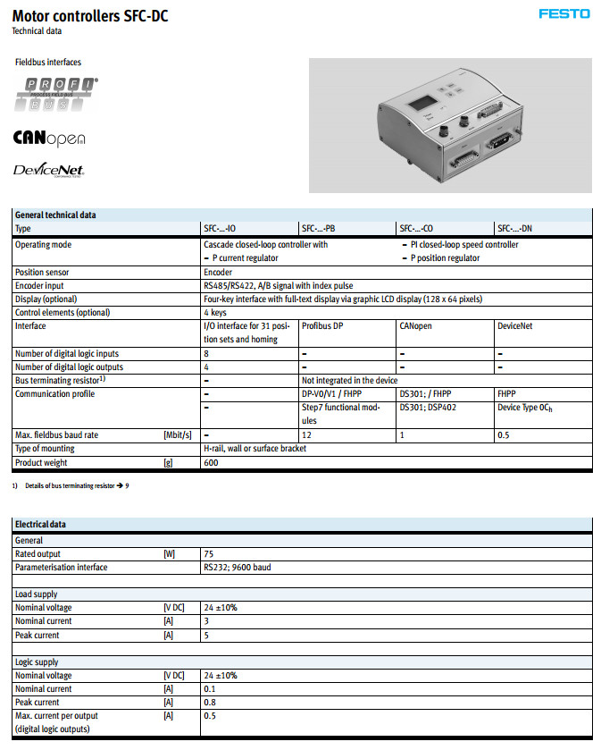 詳細信息 SFC-DC-VC-3-E-H0-IO,SFC-DC-VC-3-E-H2-PB,festo馬達控制器
