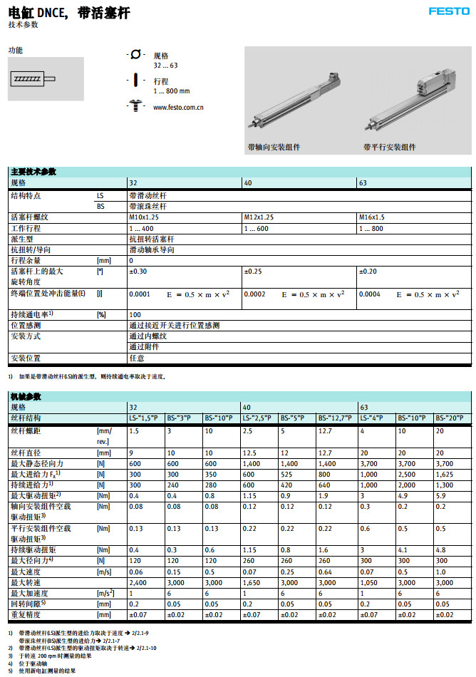 DNCE-32-100,DNCE-32-200,DNCE-40-100,DNCE-40-200,festo電缸