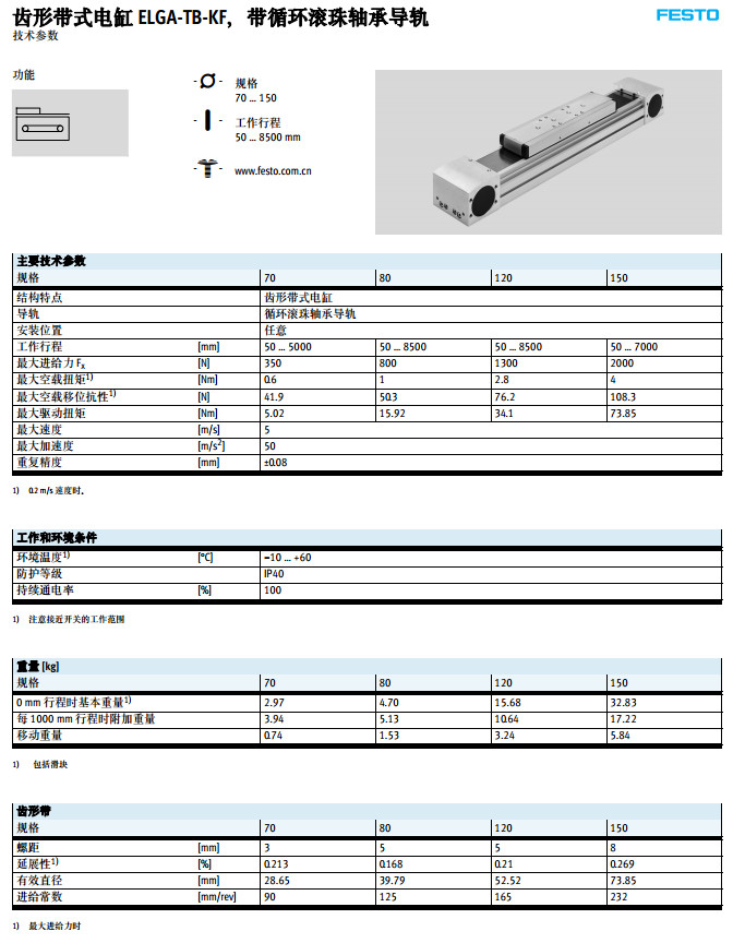 ELGA-TB-KF-70,ELGA-TB-KF-80,ELGA-TB-KF-120,ELGA-TB-KF-150,festo齒形帶式電缸 |