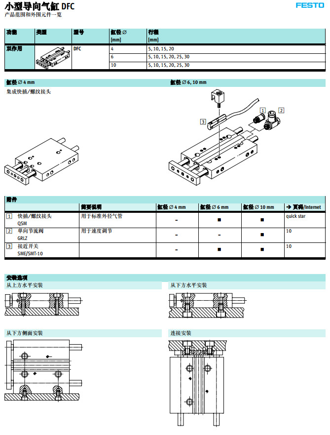 DFC-4-5,DFC-4-10,DFC-6-15,DFC-6-20,DFC-10-25,festo小型導向氣缸