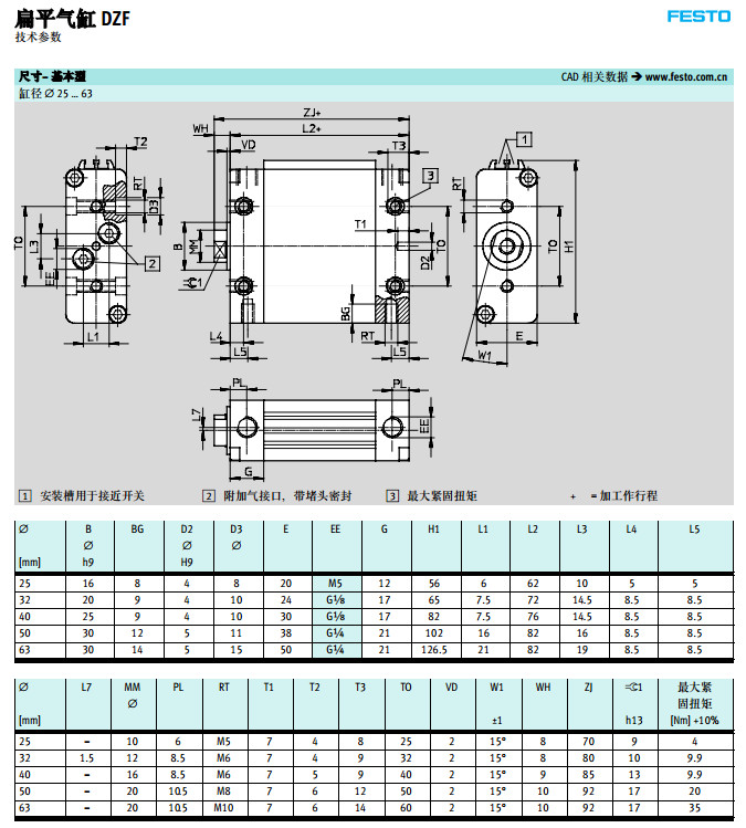 DZF-12,DZF-18,DZF-25,DZF-32,DZF-40,DZF-50,DZF-63,festo扁平氣缸 |