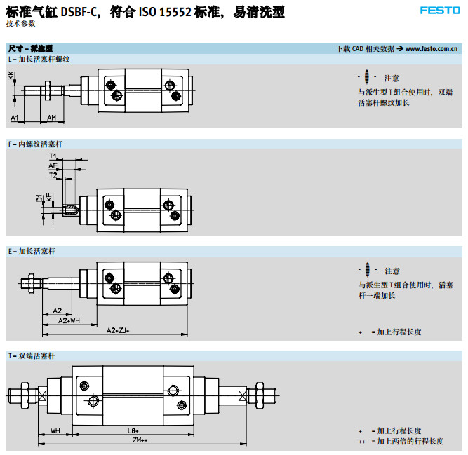 DSBF-C-32,DSBF-C-40,DSBF-C-50,DSBF-C-63,DSBF-C-80,festo標準氣缸