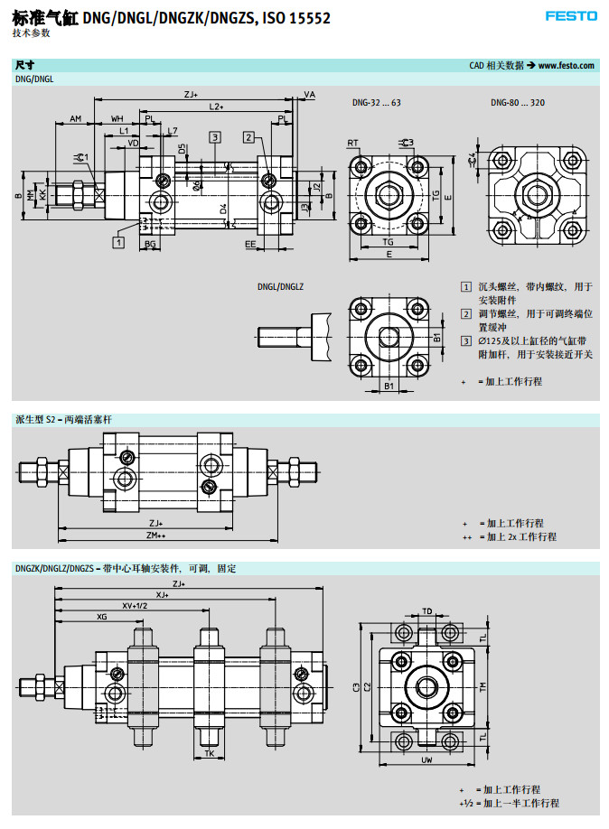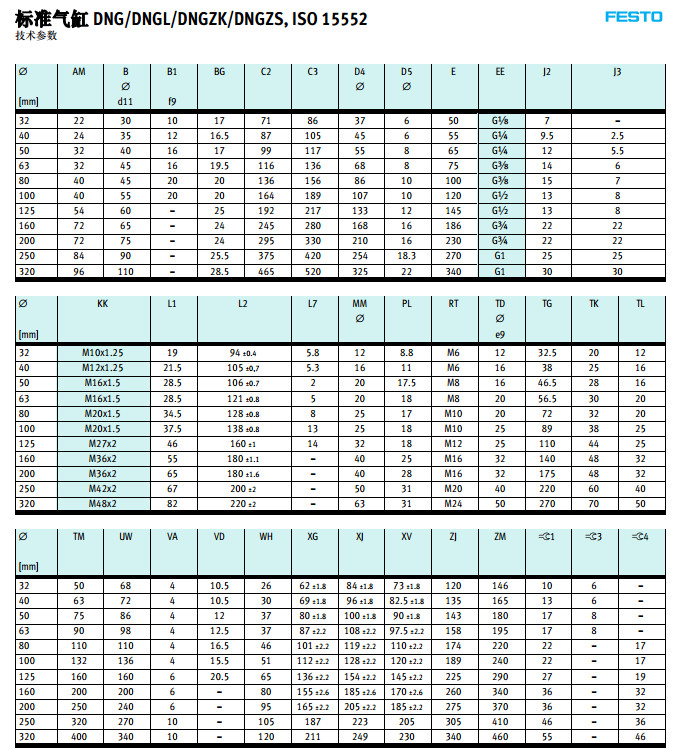 DNG-32,DNG-40,DNGL-50,DNGLZ-63,DNGZK-80,DNGZS-100,festo標準氣缸