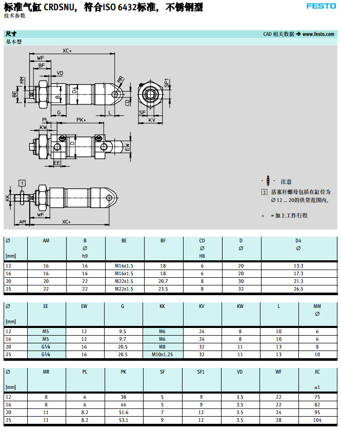 CRDSNU-12,CRDSNU-16,CRDSNU-20,CRDSNU-25,festo標準氣缸
