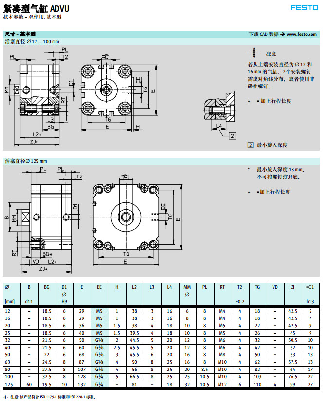 ADVU-12,AEVUZ-32,ADVULQ-50,AEVULQZ-63,ADVU-25,festo緊湊型氣缸