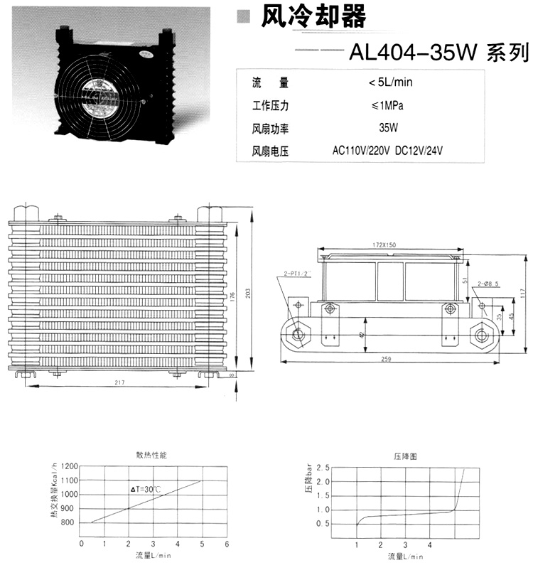 詳細信息 AL404-35W,風(fēng)冷式油冷卻器
