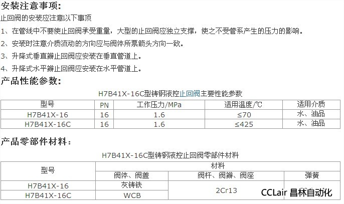 H7B41X-16,H7B41X-16C,鑄鋼液控止回閥