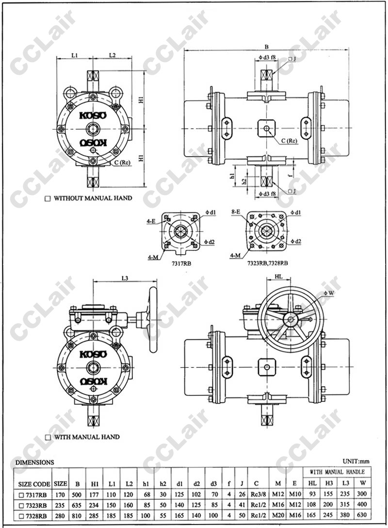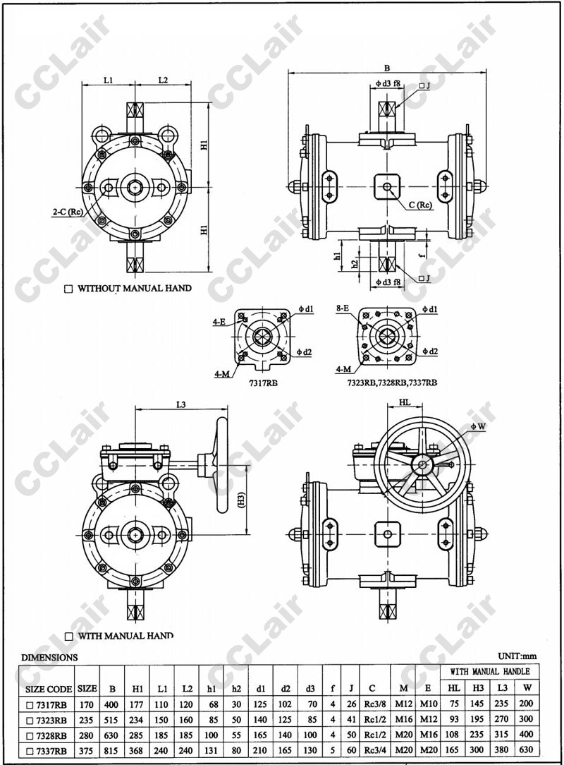 詳細信息 7317RB,7323RB,7328RB,7337RB,氣動(dòng)角行程式執行機構