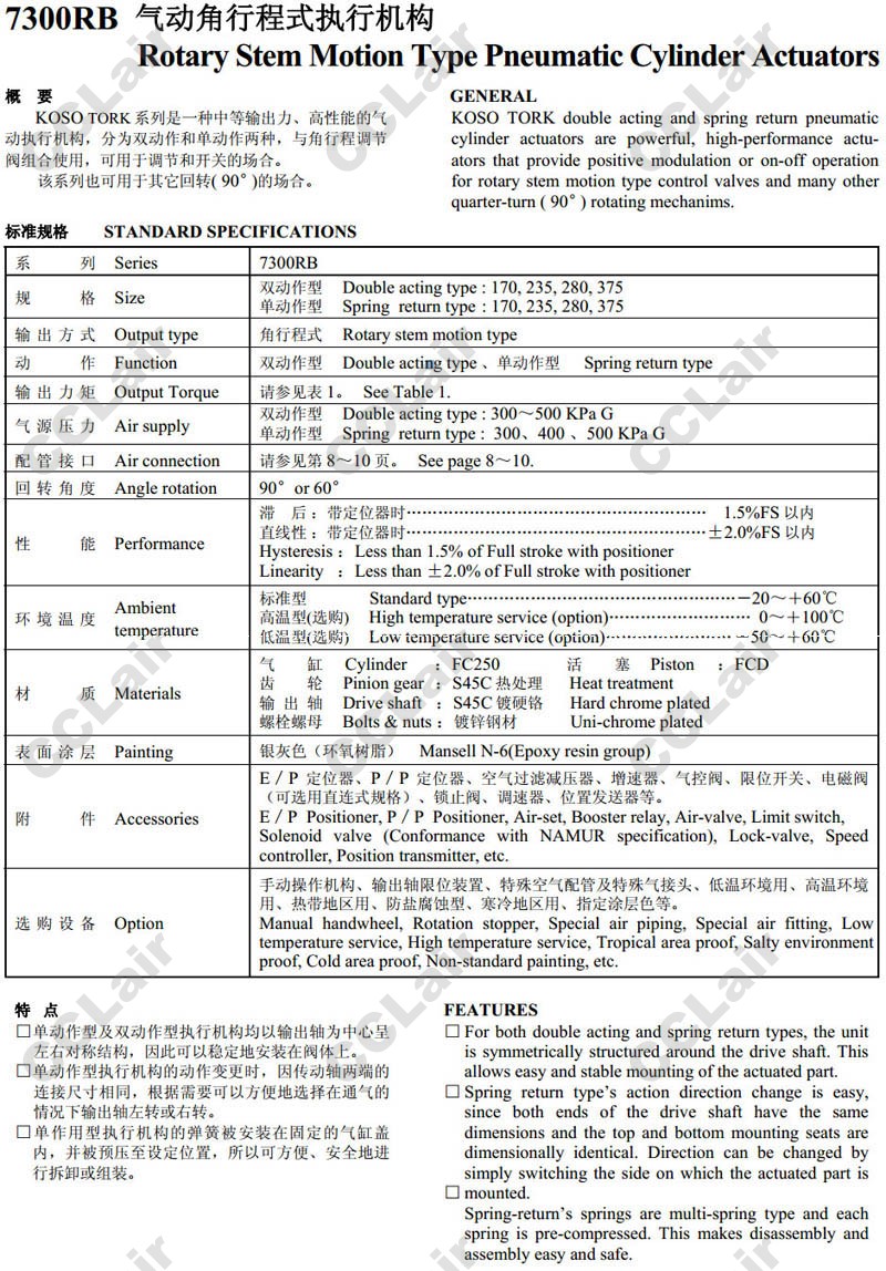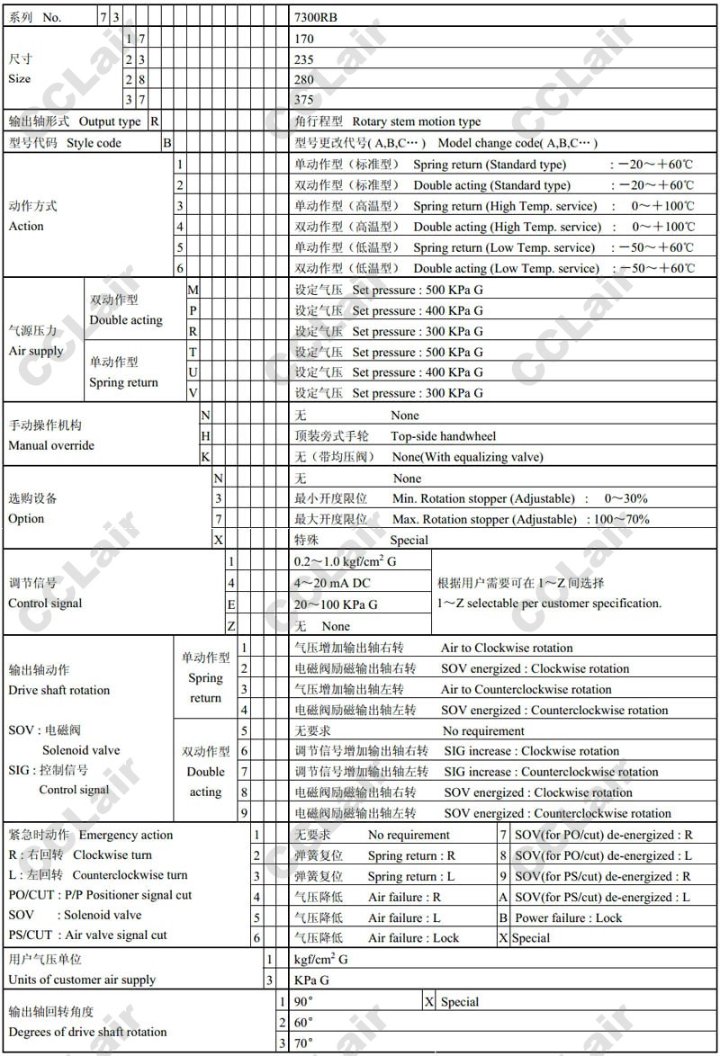7317RB,7323RB,7328RB,7337RB,氣動(dòng)角行程式執行機構